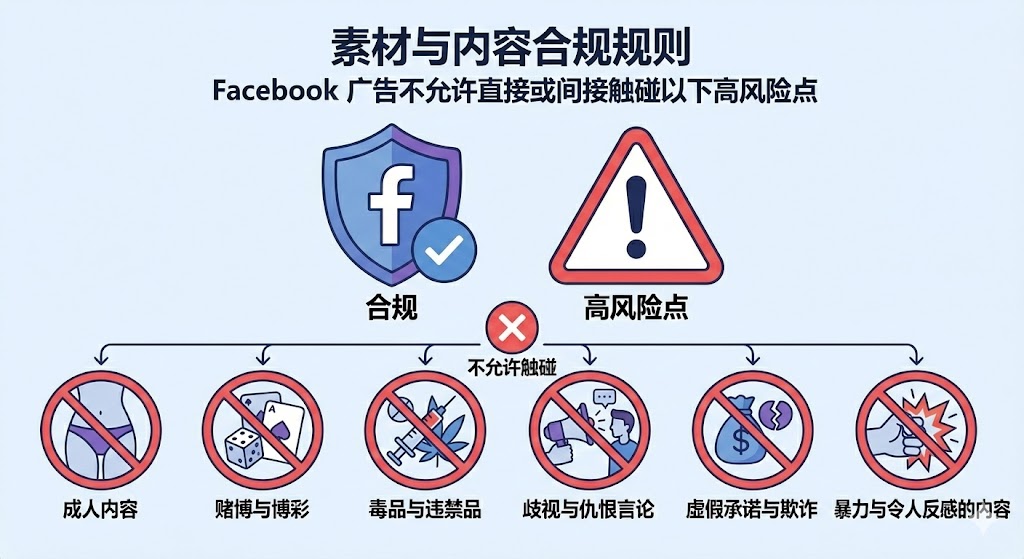 Facebook 广告不允许直接或间接触碰以下高风险点: