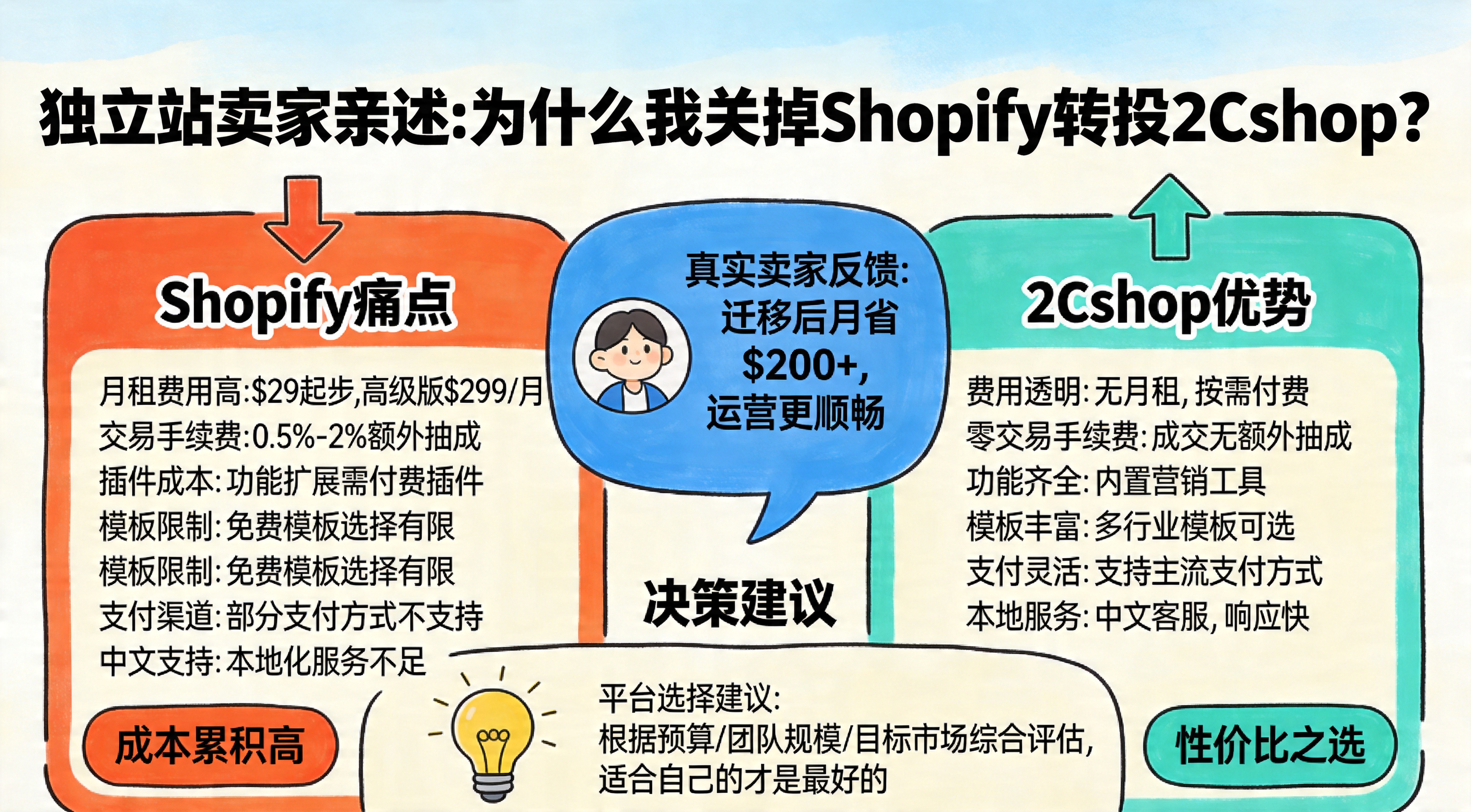 有些卖家从 Shopify 转向 2Cshop,不一定是因为 Shopify 不好,而是因为他们更在意本地化服务、长期成本、中文协同和更直接的落地效率。