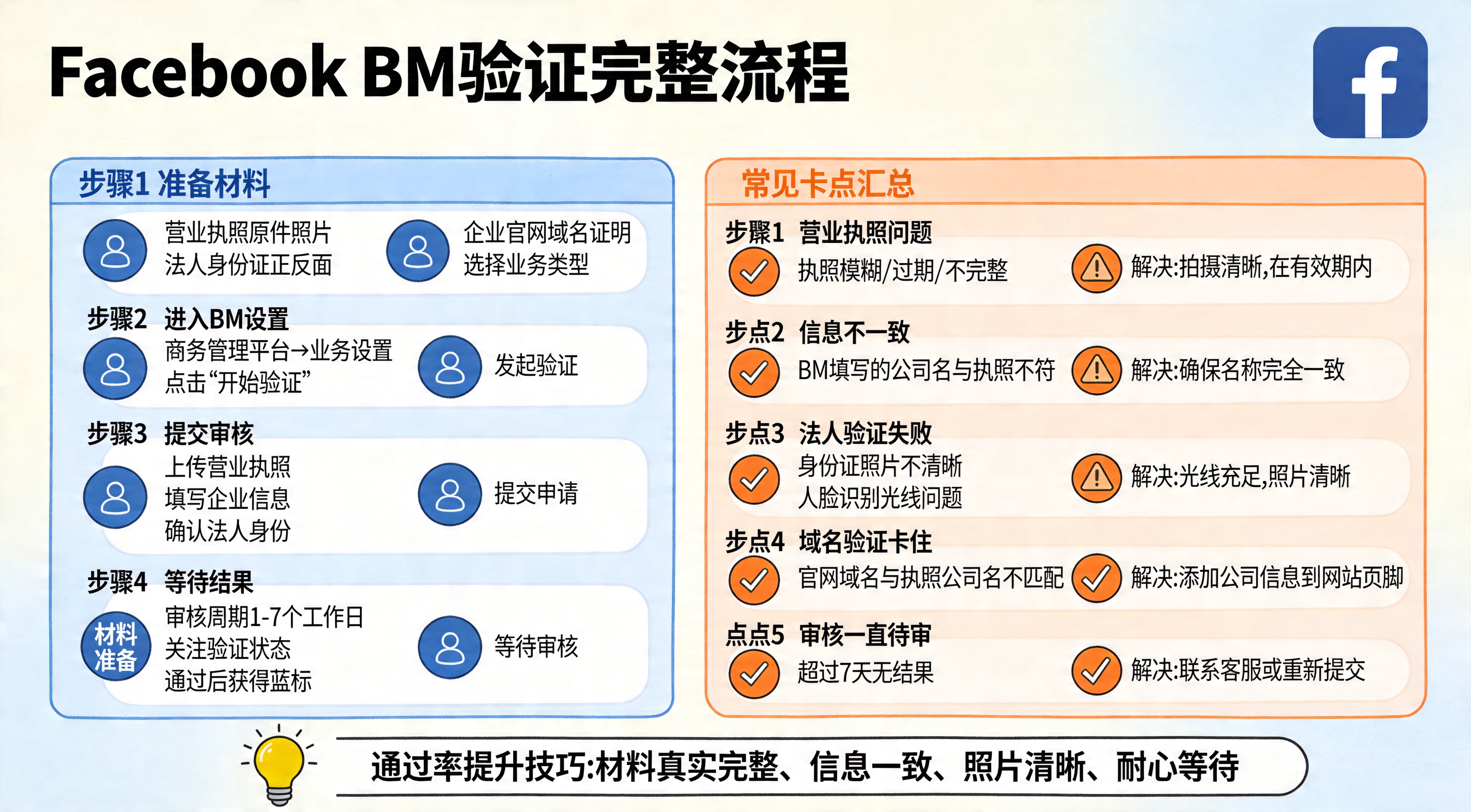 所以,Facebook BM 验证真正重要的,不只是流程本身,而是你是否让平台看到: