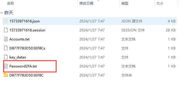 5、如果输入验证码后 还需要输入两步验证密码【2fa验证码】,请前往文件中查找如图所示的文件-文件名中带有2FA的文件,然后打开获取2FA验证密码填入即可。