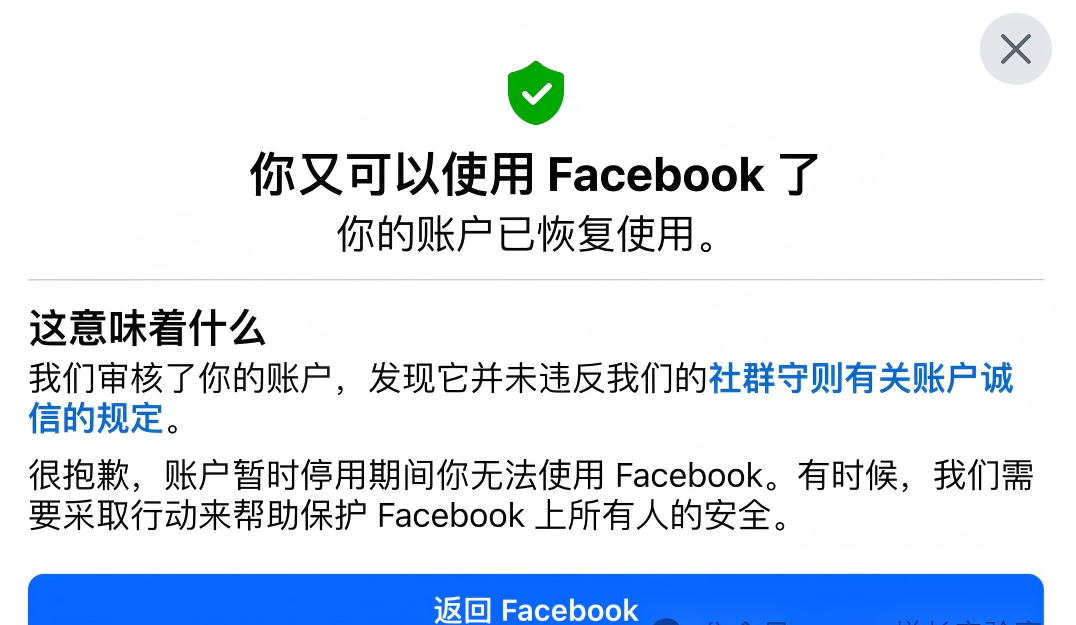 Facebook个人账号被封恢复记:从停用到解封的完整流程