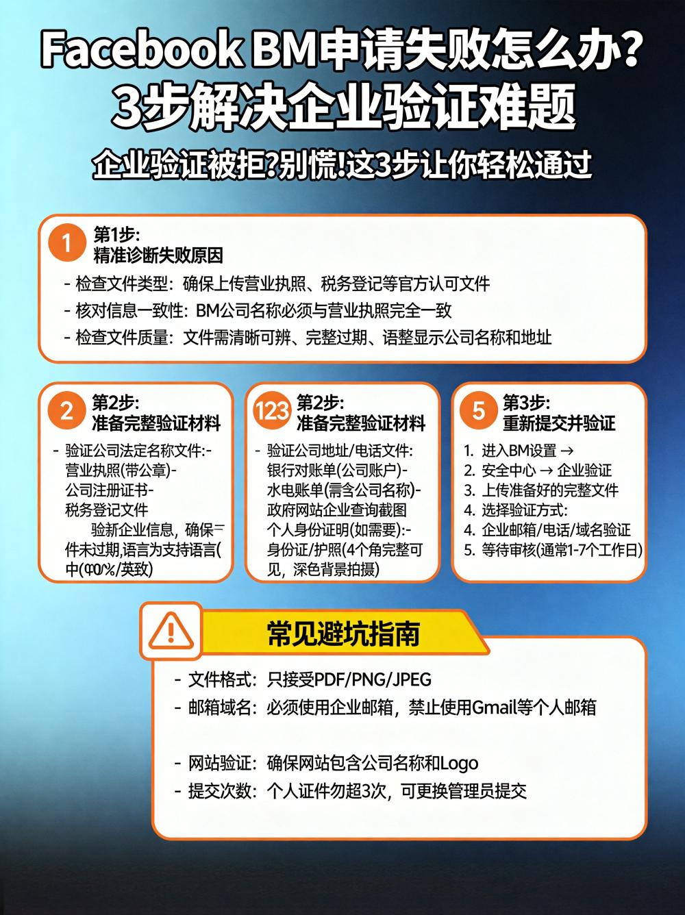Facebook BM 申请失败怎么办?3步解决企业验证难题