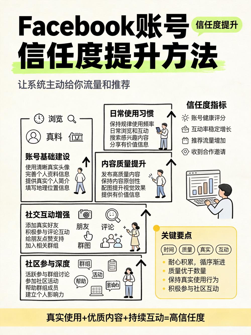 本文关键词: Facebook 信任度、账号权重、流量推荐、算法机制、养号技巧、内容运营、社交建设